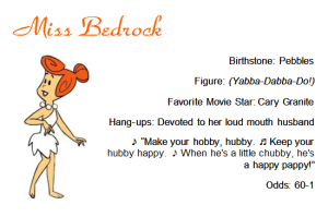 Miss Bedrock prepared a fine meal of Brontosaurus ribs and Pterodactyl pie. But domestication involuntary servitude skills are not in keeping with the priorities of the new Mz. ‘merica.