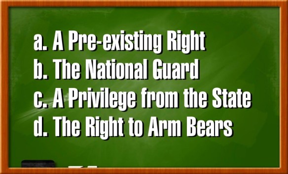 “A well regulated Militia, being necessary to the security of a free State, the right of the people to keep and bear Arms, shall not be infringed.” The language of the Second Amendment seems to guarantee what?